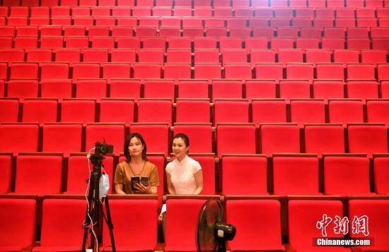 中新社记者 吕明 摄" />资料图:5月6日晚,福建福州,福建芳华越剧院的演员们在福建大剧院音乐厅,通过“云中剧院”表演经典越剧折子戏。图为主播在线介绍演出流程。中新社记者 吕明 摄