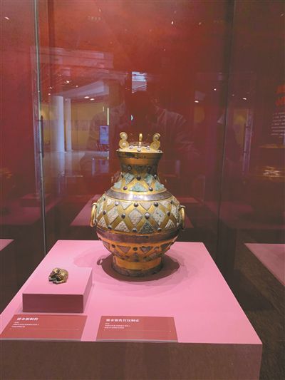 西汉 鎏金银乳丁纹铜壶、错金银铜豹 满城汉墓出土
