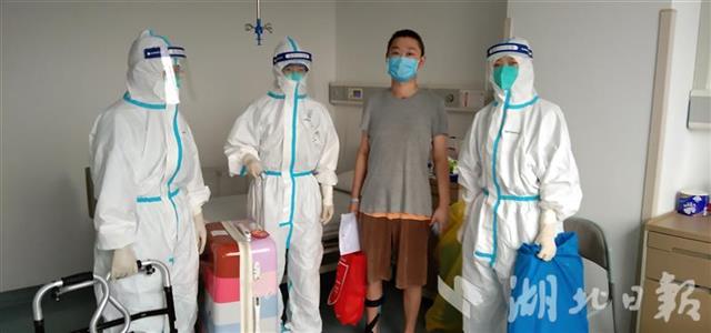 5月21日,因病区调整,章玮再次转移至武汉大学人民医院东院区。感染科主任陈晓蓓对他进行了全面检查和身体评估,并再次复查核酸仍为阴性后,5月24日中午,医护人员护送章玮出院回家。