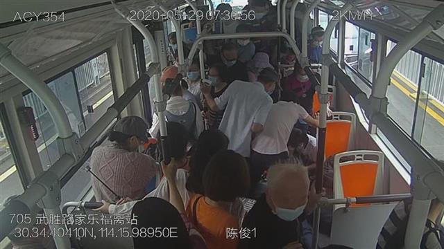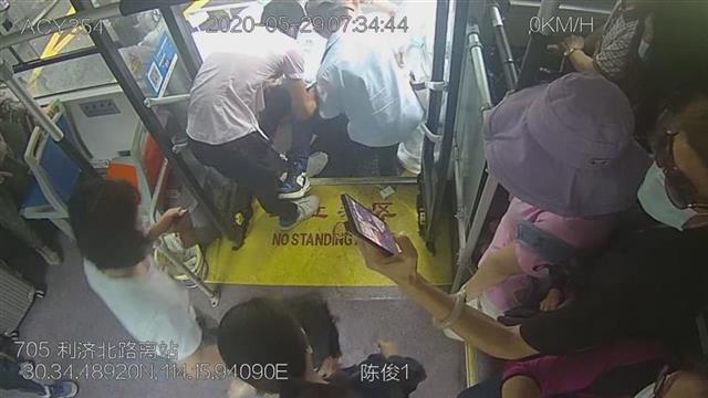 “师傅,有人发病摔倒了……”5月29日上午7点29分40秒,公交705路司机陈俊驾车由汉阳桃花岛往新湾三路方向行驶。车到中山大道利济北路路口等红灯时,车厢传来呼救声,随车安全员汪继军闻讯,赶紧上前查看究竟。