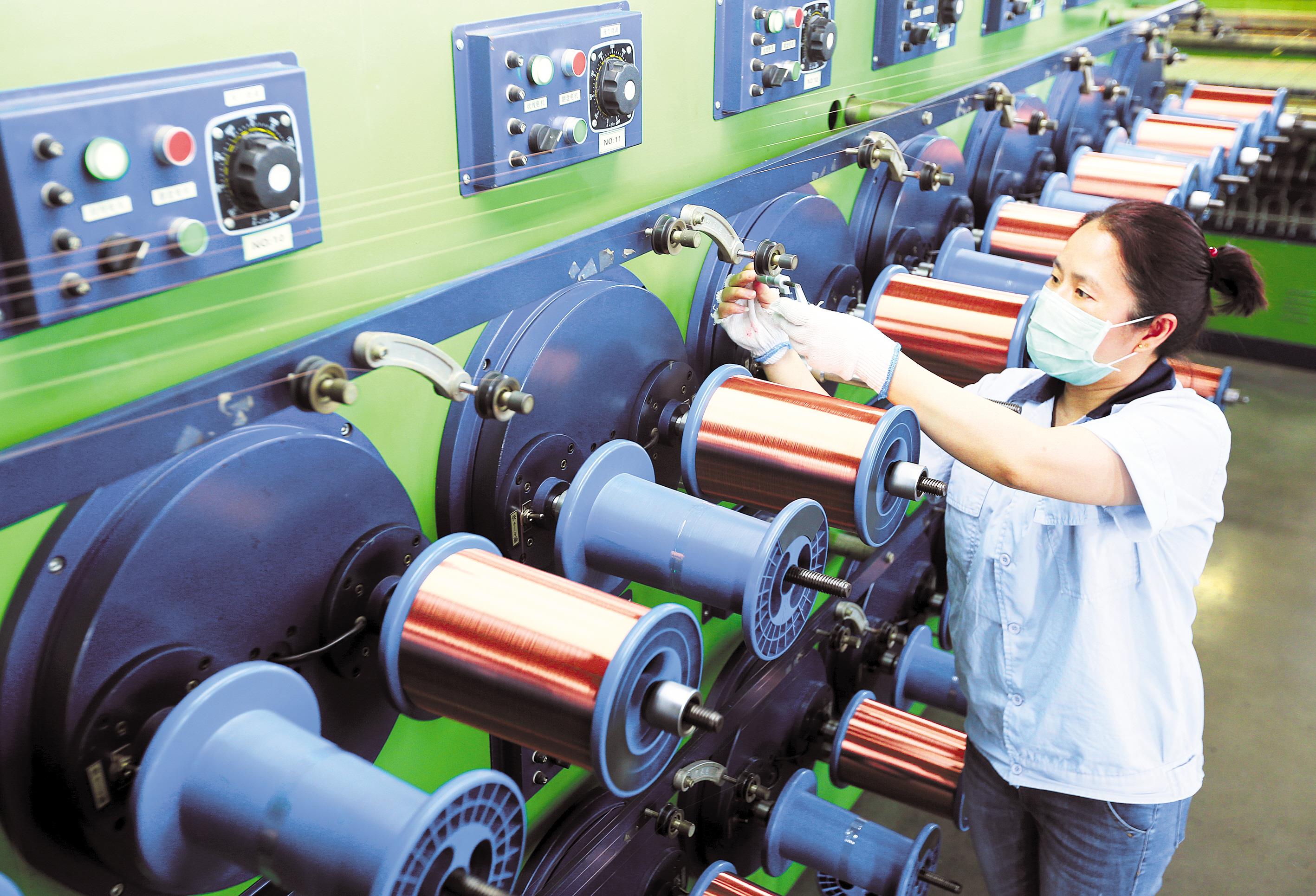 5月22日,大悟县湖北首通电磁线科技有限公司员工对超微细漆包线进行质检。该公司全员复工复产60多天来,紧抓市场复苏契机,满负荷生产赶订单,目前与国内电信、重工、机械制造企业签订的订单已排至10月。