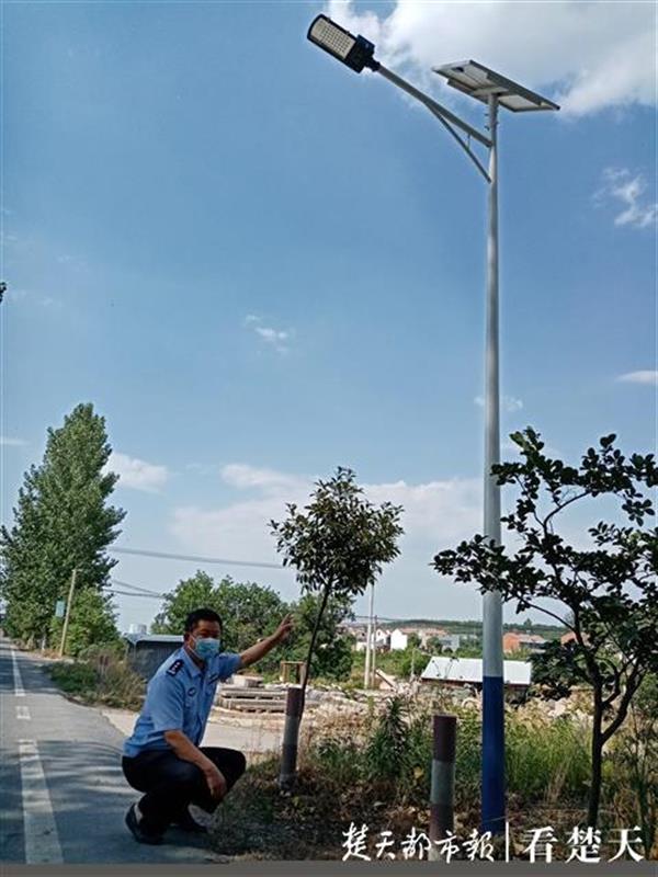 210省道广水路段安装的太阳能照明灯、警示桩