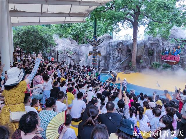 在已重启、开放的东湖海洋乐园的“东湖飞鸟世界”,家长带着孩子亲近动物。在天鹅湖广场,孩子们在工作人员的指导下,进行了鹈鹕科普喂食互动;在飞鸟剧场,场面有些热闹,孩子和家长踊跃参与互动活动。