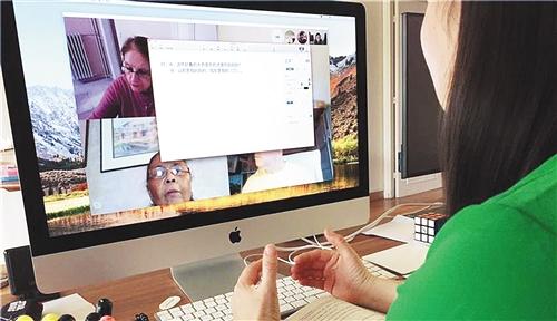 巴黎中国文化中心的老师正在为学员线上授课。本报记者 李鸿涛摄
