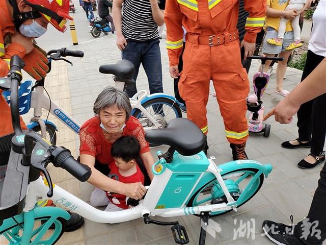 无独有偶,5月31日18时30分许,襄阳市襄州区老西湾路一小女孩在玩路边自行车时,不小心手指被链条卡住了无法脱身,情况紧急!消防员到场后,发现小女孩左手无名指被卡在一辆共享单车链条里,无法取出,奶奶抱着孩子在一旁急哭了。消防员见状立即安抚小女孩情绪,利用切割设备将链条切断,小女孩手指被取出。见小女孩手指伤势较重,随后,消防员将孩子父亲和小女孩紧急送往附近医院治疗,所幸孩子并无大碍。