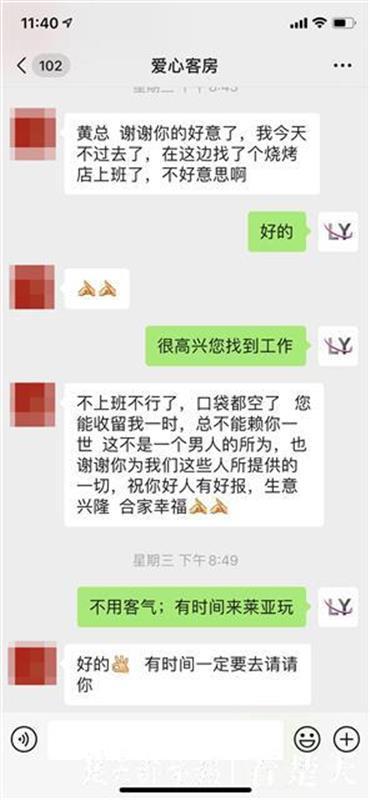 消息发出后,黄亚芳接到了很多申请电话,先后共有10多位外地来汉求职者,住进爱心客房。期间,她也遇到了一些不讲道理的人,比如一些顾客无法提供订票消息,不符合入住条件,便直接将她微信拉黑,更有一些客人,直接开着价格不菲的私家车来到酒店,却称需要帮助。