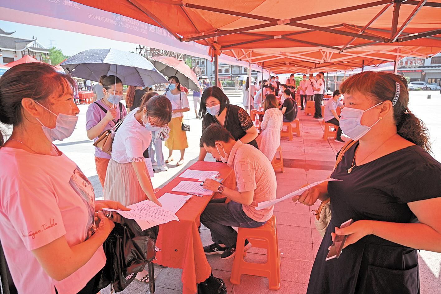 6月1日,宜昌市点军区“聚力就业扶贫 助力脱贫攻坚”就业扶贫专场招聘会,在车溪村与桥边村同时举办。当天招聘会提供500余个岗位信息,包括技术员、仓管员等。(湖北日报全媒记者 刘曙松 通讯员 刘雅静 摄)