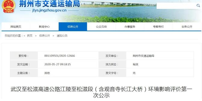 日前,荆州市交通运输局官网发布武汉至松滋高速公路江陵至松滋段(含观音寺长江大桥)环境影响评价第一次公示,披露了关于这座长江大桥的不少“干货”。