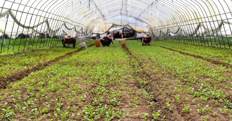 在农业基地,广厦润田抢播快生蔬菜600亩,种植毛白菜、上海青、薯尖、油麦菜等,每亩产量达3000斤。