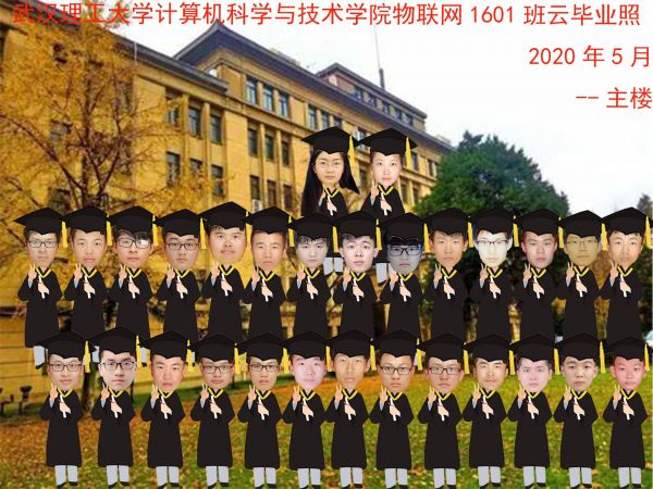 武汉理工大学物联网1601班在学校不同背景下的“云毕业照”。蔡文增提供
