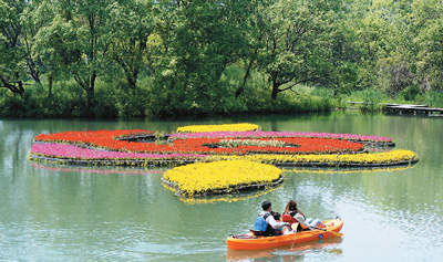 ↑随着气温回升和疫情转好,浙江杭州西溪国家湿地公园日前举办“西溪花朝节”,吸引不少市民前来感受旖旎春光。图为游客坐船游览西溪湿地。龙巍 摄(人民视觉)