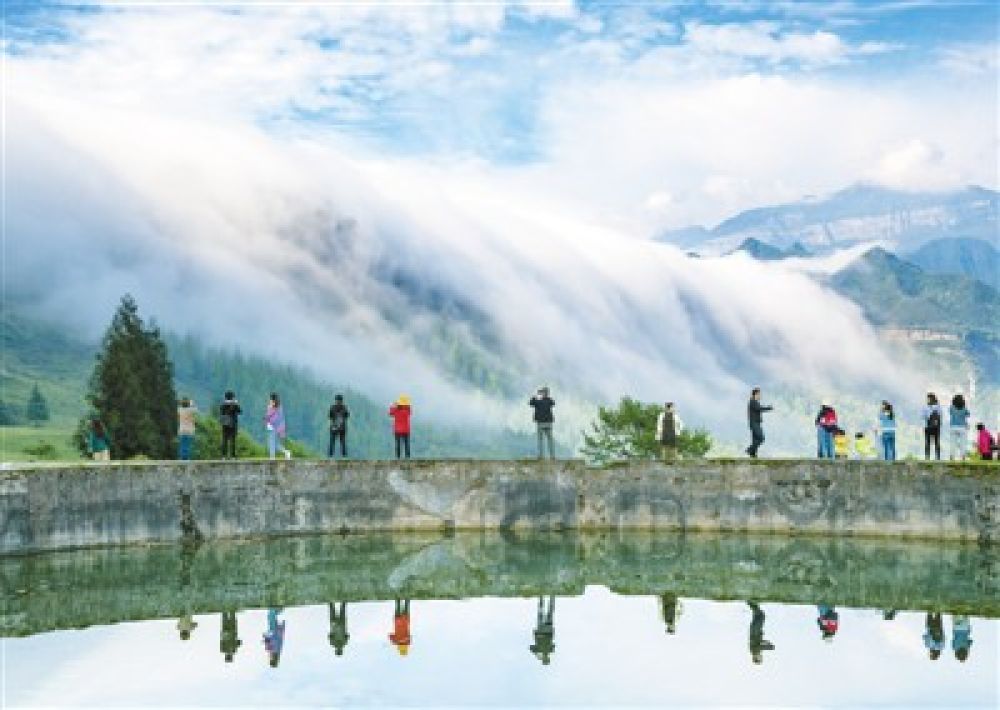 ↑日前,重庆市南川金佛山东麓出现了云瀑景观,引来游客驻足拍照观赏。进入5月,随着疫情得到有效控制,重庆市民纷纷选择本地游、周边游,趁着休息日走出家门放松身心。夏于洪摄(人民视觉)