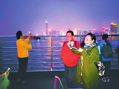 趸船迁走后,武汉市民纷纷来到岸边,拍照留影。