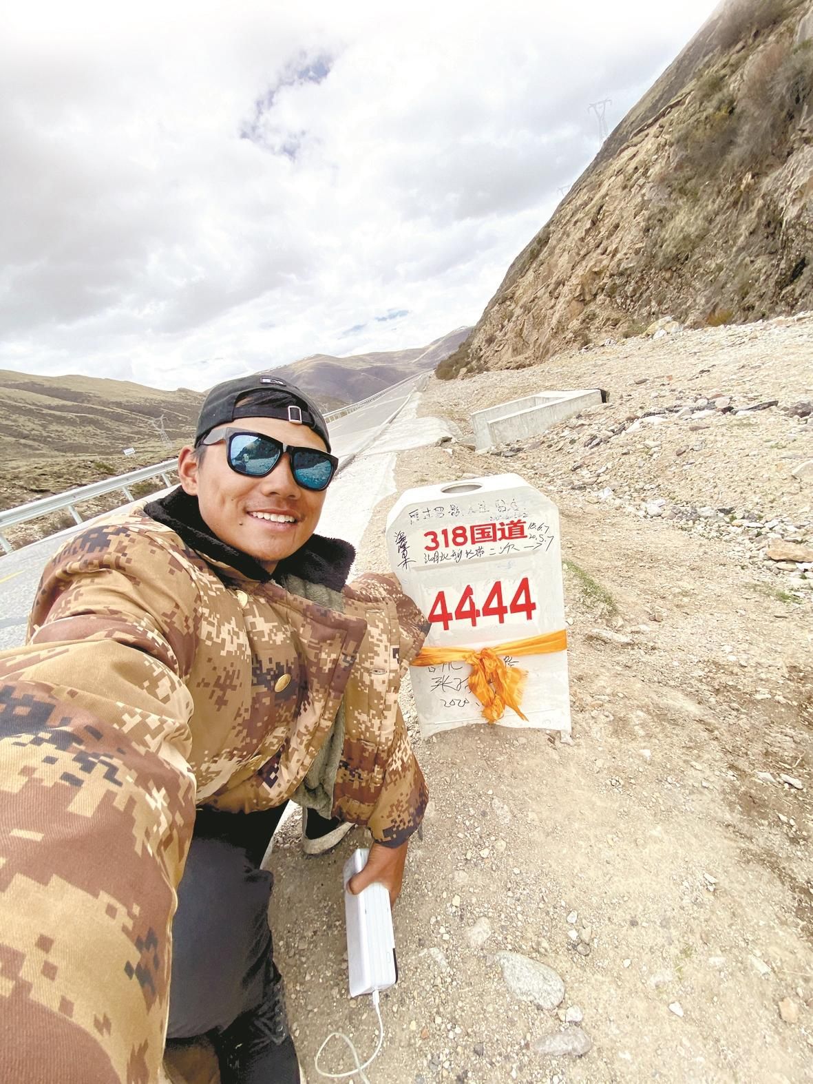 小伙子拉着板车徒步进藏宣传恩施