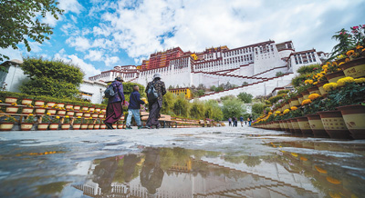 6月3日,在严格落实新冠肺炎疫情防控措施的前提下,西藏布达拉宫有序恢复对外开放。开放期间实行预约、分时、限流参观,每日预约参观人数限额2100人。据了解,游客进入景区游览将严格执行“一进一测、实名登记”制度,不仅需佩戴好口罩,还需出示本人电子票、二代居民身份证和健康码。