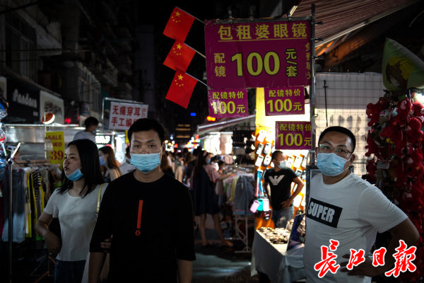 长江网6月4日讯近日,号称武汉最大最繁华的保成路夜市重新开街。6月3日晚7点,从中山大道至京汉大道近1公里的保成路夜市灯火通明,狭窄的巷子两边摆满了地摊,摊位上堆满琳琅满目的商品,街上是往来熙熙攘攘的人群,夜市老板们放声招揽生意,市民讨价还价,一派繁华喧闹。随着复工复产复市推进,武汉街头传统的夜市再次热闹起来,不少市民前来消费休闲,初夏的烟火气充满生机。(记者任勇 摄影报道)