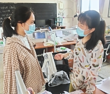 返校复学后,学生们经常会到尹红霞(右)的办公室里交流学习生活。