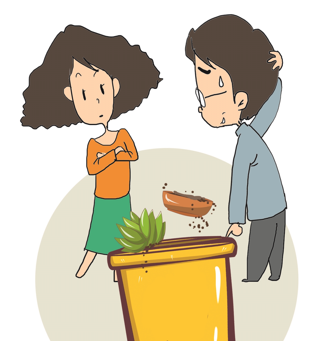 有一次老婆不在家,我到儿子的卧室打扫卫生,窗帘一拉开,“啪嗒”一声,吓了我一跳:放在窗沿上的一盆多肉,被我打翻在地,多肉连 着碎土和小石子洒落了一地。我赶紧拿扫帚扫了干净,又用拖把拖了一遍,嘿,就像什么都没有发生过一模一样!但是“犯罪”证据那个小花盆如何处理?哎呀,人不知鬼不觉地扔进垃圾桶里,老婆难道还会去垃圾桶里检查不成?