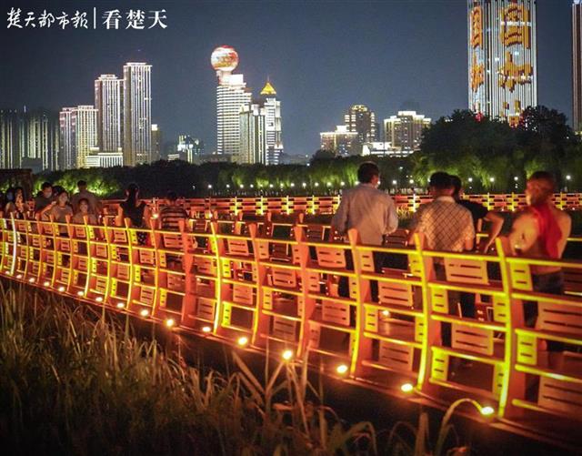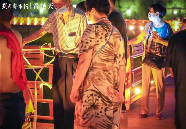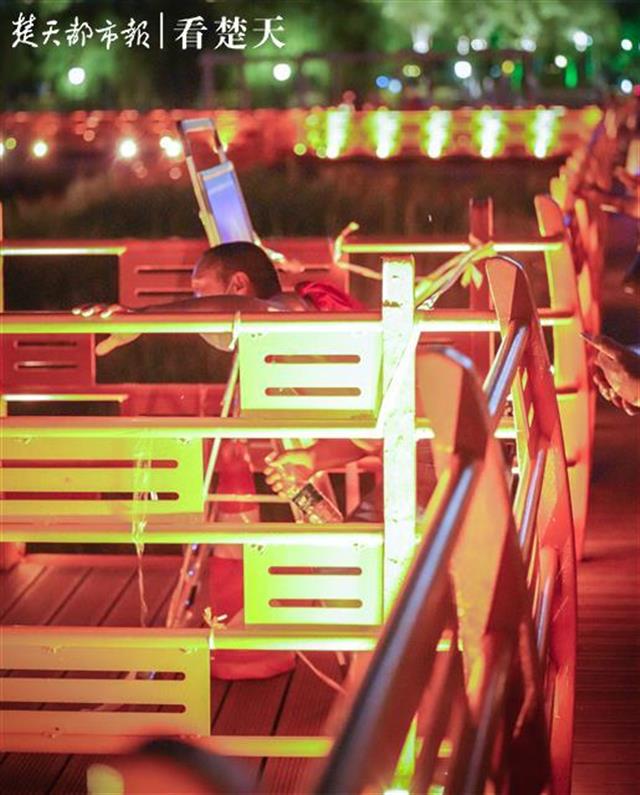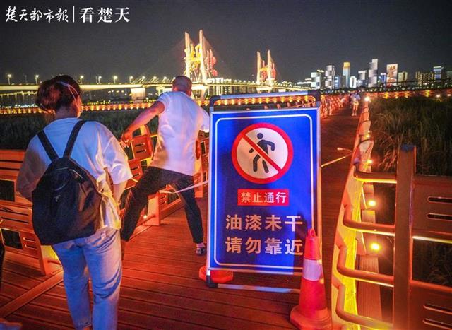 据悉,汉口江滩的观芦栈道距离地面平均为3.5米,护栏高度为1.1米,市民和游客可在护栏内停留、观江、赏芦。但此次正逢观芦栈道维修刷油漆,没想到在夜晚未干油漆的栈道也阻止不了市民们观赏夜景的脚步。