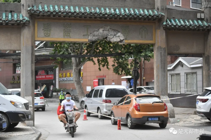 老牌坊下方被撞了一个大缺口