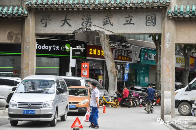 市民许先生介绍,他就在珞珈山路武汉大学老牌坊周边做生意,5日晚10时30分,他离开该路段时,事故还未发生。今日上午,他来到珞珈山路时看到,老牌坊周边有许多围观群众,还有几位民警正在现场,其中一位民警称,老牌坊于昨晚遭车辆撞击。