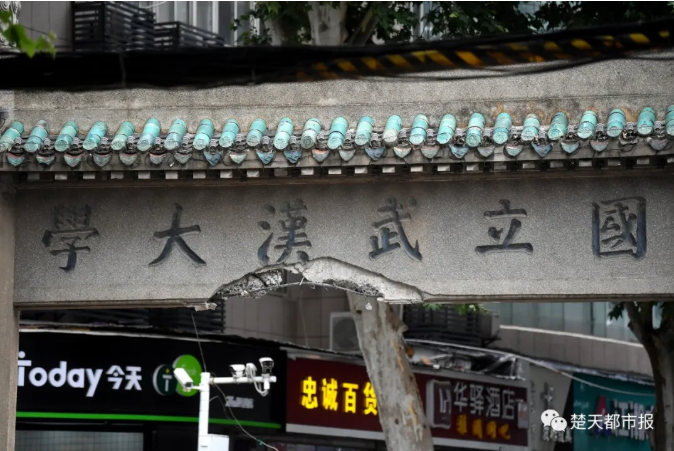 楚天都市报6月6日讯(记者余渊 萧颢)5日晚上,位于洪山区珞珈山路的武汉大学老牌坊,遭车辆撞击后受损。