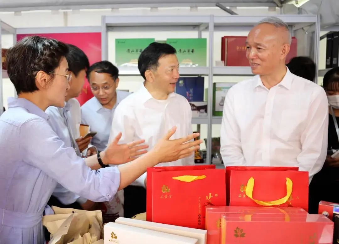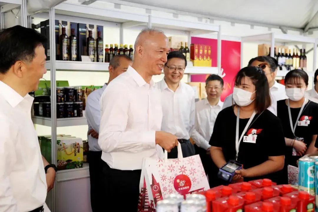 在启动活动现场,北京市委书记蔡奇特别来到湖北特产专卖区。蔡奇现场扫码下单为湖北农产品带货,购买了湖北藕粉等农产品。