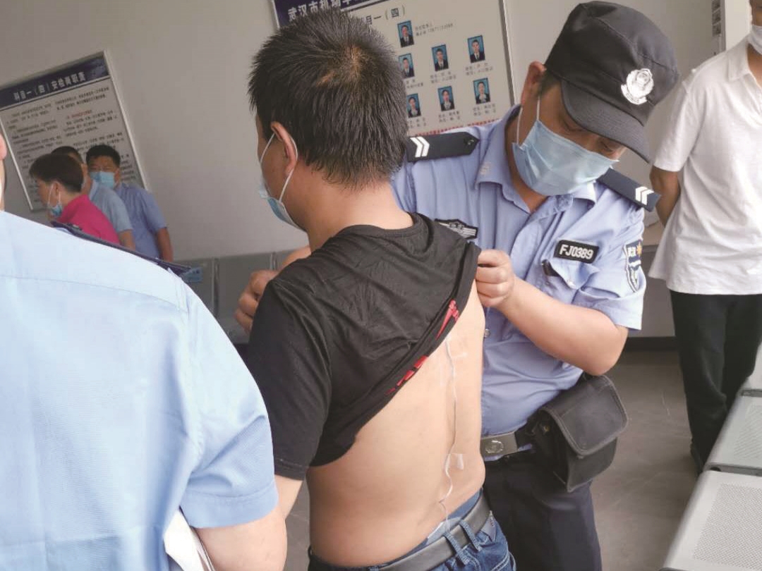 昨日上午9时许,武汉市机动车驾驶人知音考场举行科目一考试。在考生报到时,监考民警黄汉斌发现考生钱某很奇怪,“天气很热,他却穿着长袖夹克衫,满头是汗!”黄警官悄悄嘱咐考场工作人员对钱某“特别关注”。