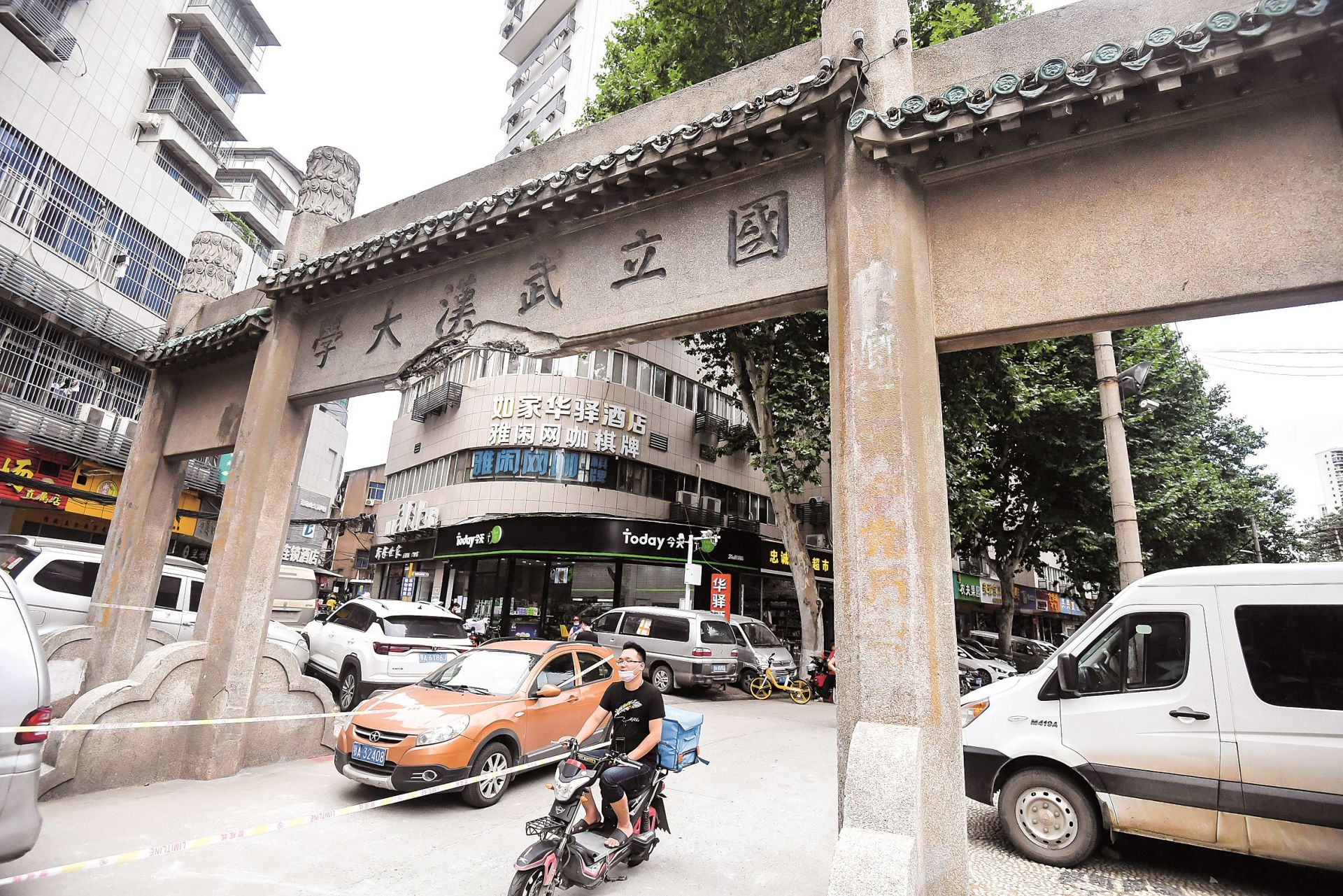 受损的武大老牌坊 楚天都市报记者萧颢摄