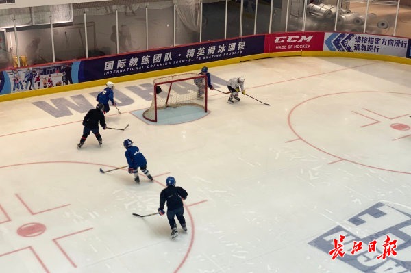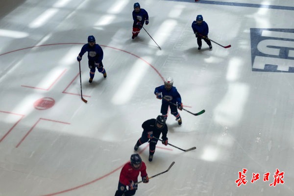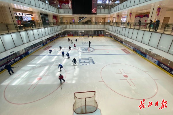 长江网6月7日讯 6月7日,武汉市泛海城市广场里的室内滑冰场上,一群冰球小将在教练的指导下进行冰上速度训练。他们排着队极速冲刺,商场里的人们被孩子们精彩的冰上技术吸引,纷纷拿出手机拍照为他们加油。(记者彭年 摄影报道)