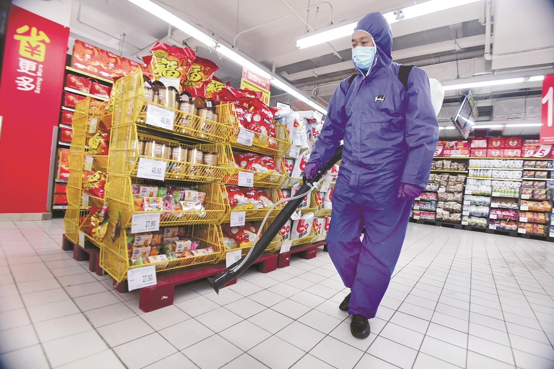 新冠肺炎疫情暴发以来,市场对消杀服务需求庞大,武汉消杀行业迎来井喷式增长。图为消杀人员为江夏一学校消杀。楚天都市报记者李辉摄