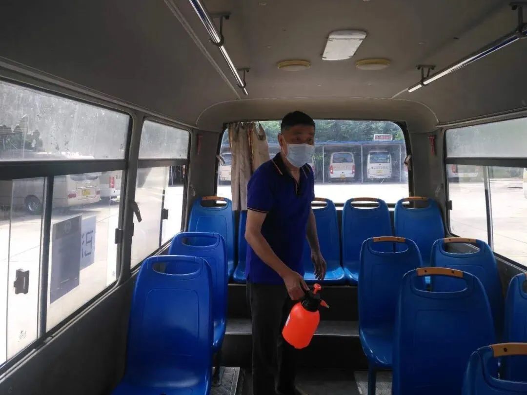 武汉大学对校车进行消杀。(武大宣传部提供)