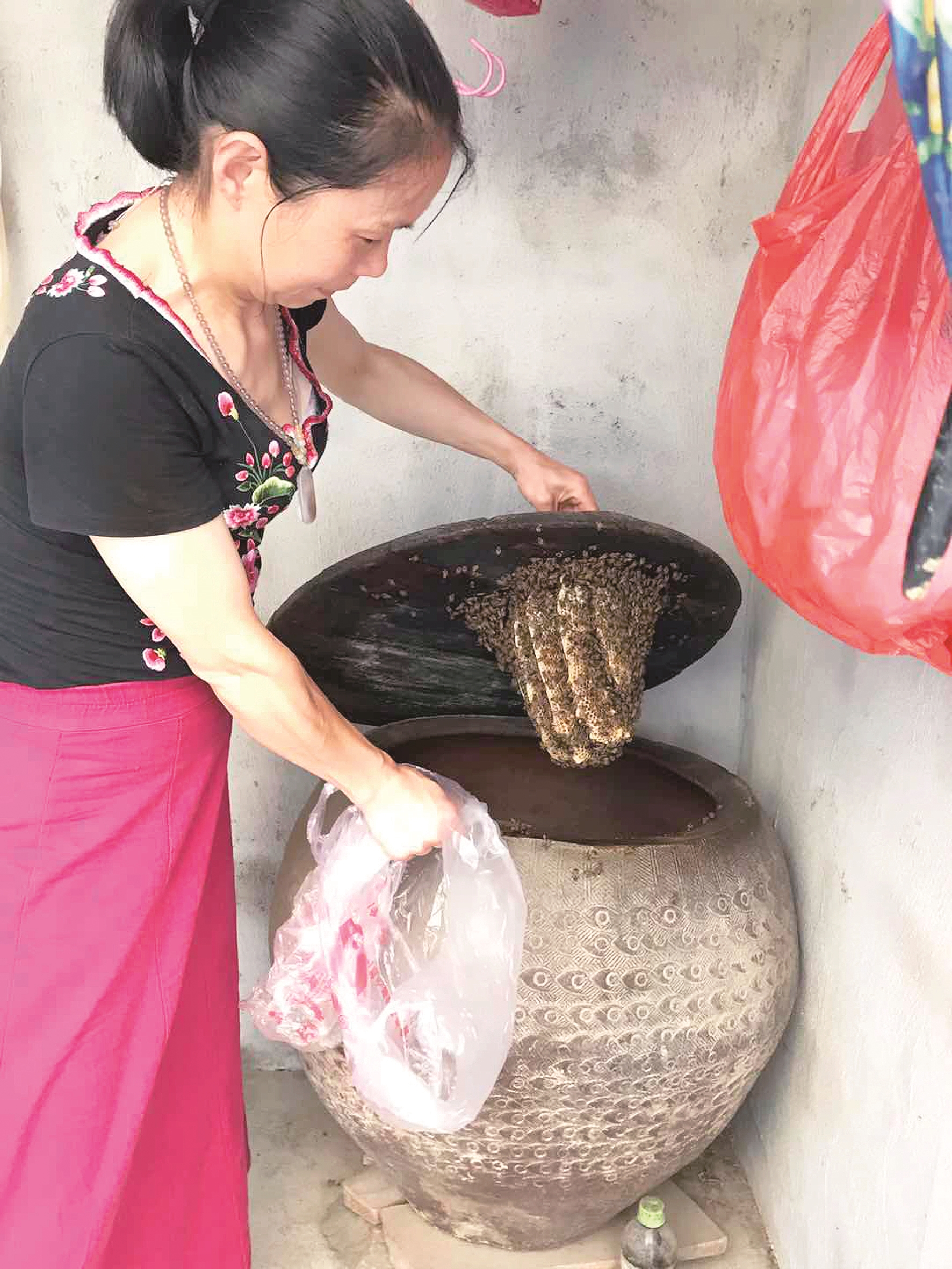 苏大爷说,这些蜜蜂有灵性、通人性,从不袭扰自己和老伴。天气炎热后,苏大爷和老伴在小院里摆起桌椅吃饭,人和蜂近在咫尺也能相安无事。每逢子女回来团聚或是邻居来串门,哪怕用树枝扑打,蜜蜂也只是闪避飞走,绝不会攻击蜇人。