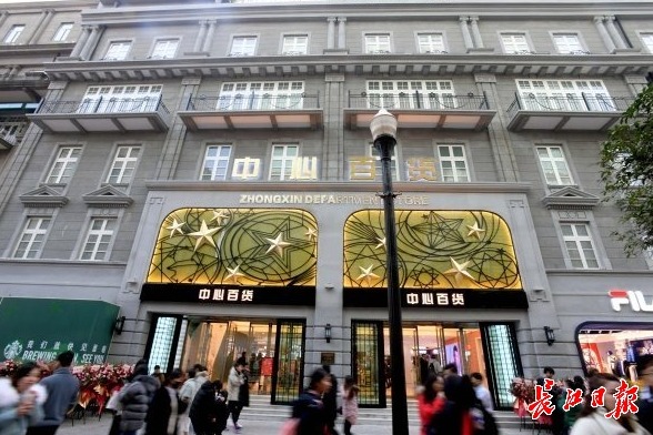 去年12月31日,82岁的中心百货闭店提档升级5个月后,重现“原貌”开门迎客。改造后的中心百货吸引了星巴克武汉首家“啡快”店、意大利FILA(斐乐)华中首家集合店、巴基斯坦地道餐厅等。