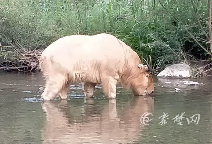 秦楚网讯 文/见习记者 吕鑫 图/冯世立 报道:8日一大早,十堰野生动植物保护群一张照片惊艳亮相,照片中,清澈见底的溪水中央,一只壮硕的野生动物正悠闲地喝水,只见它头顶有一对犄角,满身长毛,金黄中泛着白色,大大的眼睛圆鼓鼓的,看起来呆萌可爱。经市野保站专家确认,这是一只国家一级保护动物羚牛。