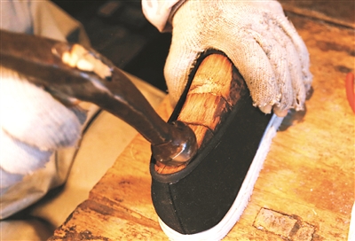 做布鞋有30多道工序,每一道都不轻松,尤其是楦鞋,很费体力,没过多久就敲打得满手血泡,疼痛难忍。赖淑芳咬牙坚持,把血泡磨成老茧。
