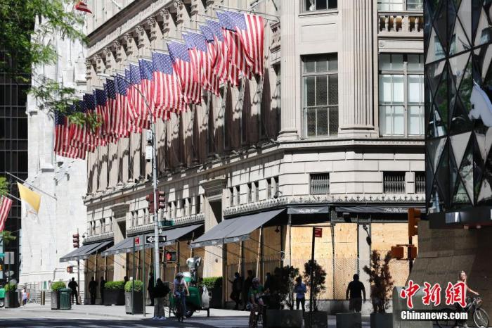 中新社记者 廖攀 摄">当地时间6月8日,纽约五大道百货大楼仍然紧闭门户。中新社记者 廖攀 摄