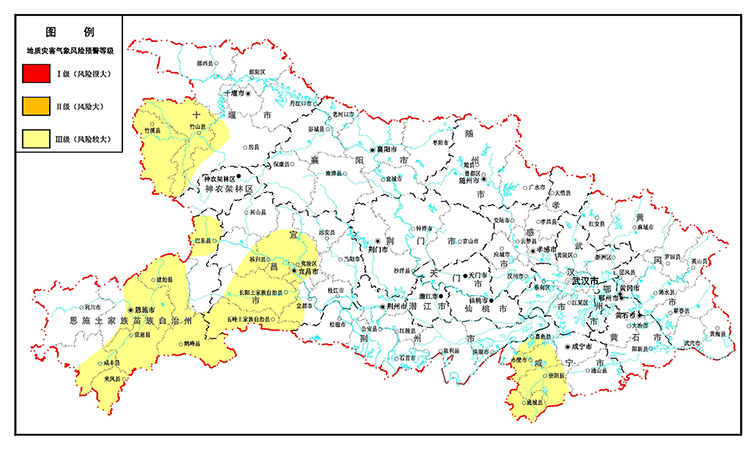 荆楚网客户端一荆楚网消息(记者徐蕾 通讯员杜琦)6月9日,湖北省自然资源厅发布最新一期地质灾害气象风险预警:2020年6月9日08时-6月10日08时,预计三峡库区(巴东中北部、秭归东部、夷陵),十堰(竹溪、竹山、房县西部)、恩施(恩施市中部和东部城区、建始、宣恩、鹤峰、咸丰东部、来凤)、宜昌(宜昌市城区、长阳、五峰、宜都西部)、咸宁(嘉鱼南部、赤壁、崇阳、通城)以及其他暴雨中心发生崩塌、滑坡、泥石流的风险较大(Ⅲ级),请相关地方政府及有关部门做好地质灾害防范工作。
