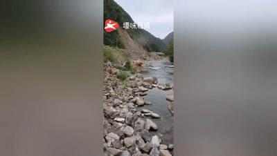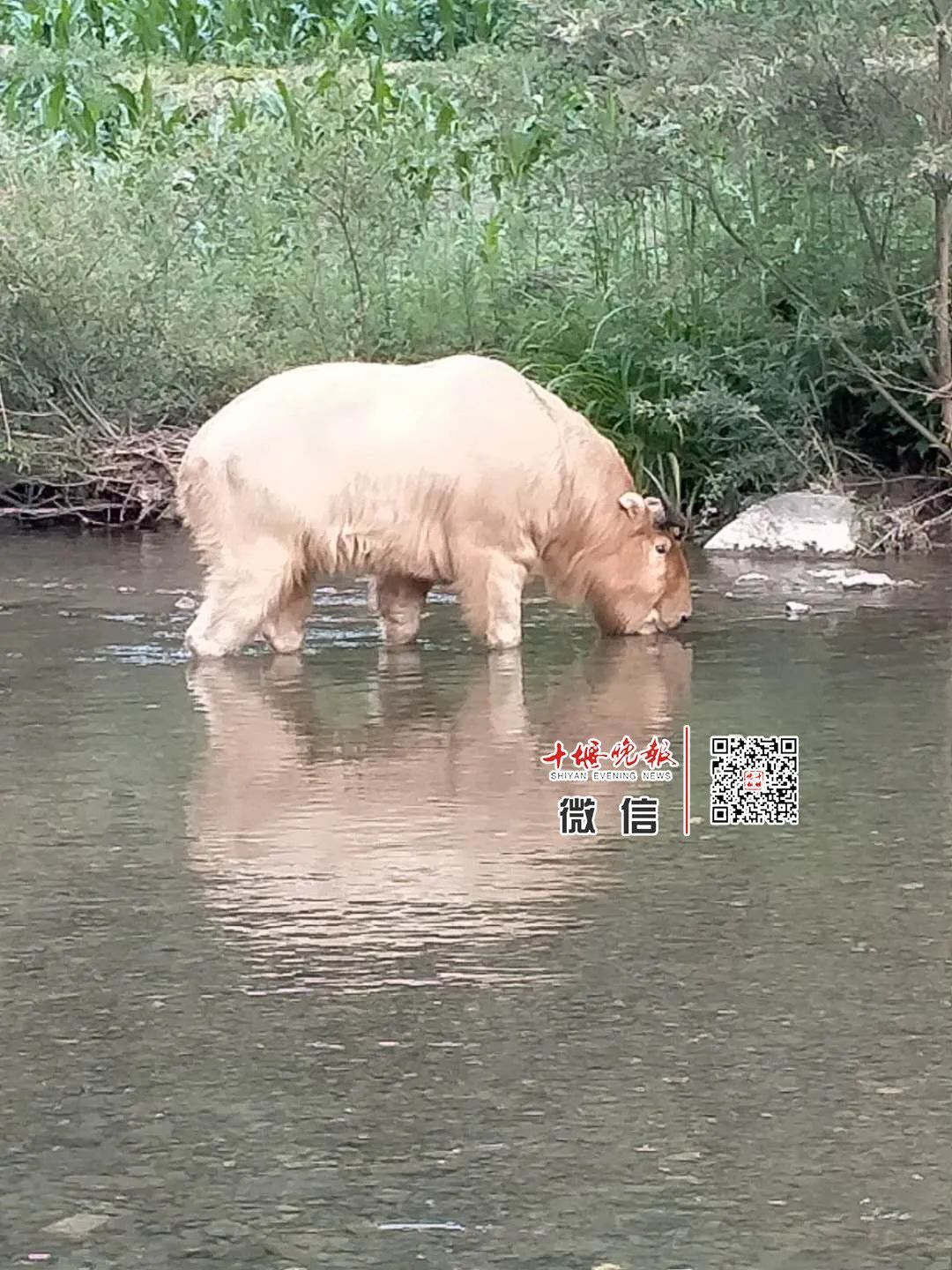 竹溪发现羚牛从居民家屋后走到河中喝水