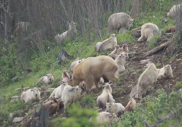 在另一位网友发布的抖音视频中,记者同样看到了羚牛在竹山柳林公组三河坡地上奔跑的画面,体型健壮,给人一种健康和充满力量的感觉。