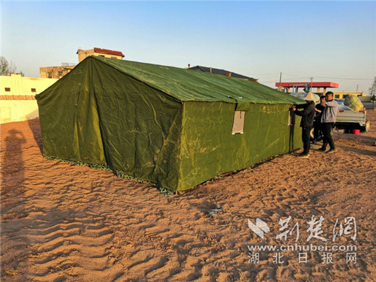 检验人员在沙漠里搭帐篷。 通讯员供图