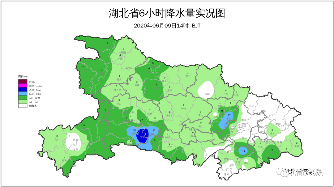 9日晚上:鄂西南、鄂东北东部、鄂东南阴天有小到中雨,局部大雨或暴雨;其他地区多云有阵雨。东部地区局部伴有雷电。