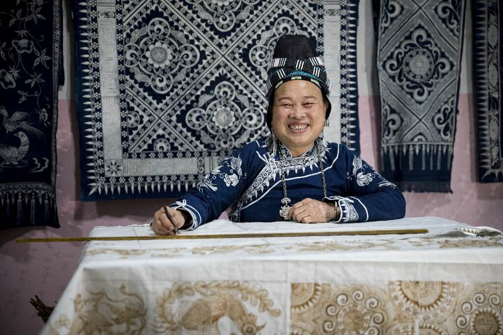 被称为“东方第一染”的贵州丹寨苗族蜡染作品也远销海内外,成为丹寨人民脱贫致富的“好帮手”……