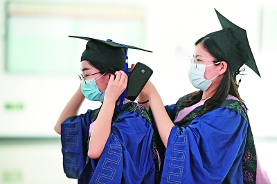 杨琳和杨紫琰分别来自湖北钟祥和随州,二人不仅是室友还是闺蜜。杨琳说,开始很担心没有毕业典礼,接到学院通知说将举办小型毕业典礼,让同学们都很兴奋。“尽管只有拨穗正冠、合影留念等几个简单动作,但心里头格外甜。”杨紫琰说,她即将去英国伦敦政治经济学院留学,杨琳保研本校本专业,马上就要分别了,心里还是很难受,一起参加毕业典礼弥补了很多遗憾。