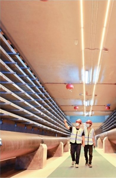 已建成的中法生态城综合管廊示范段——电力通信舱。