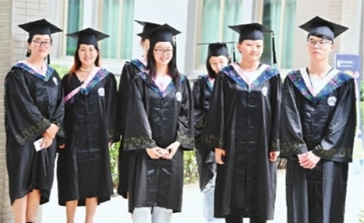 同学们在毕业典礼上合影留念。