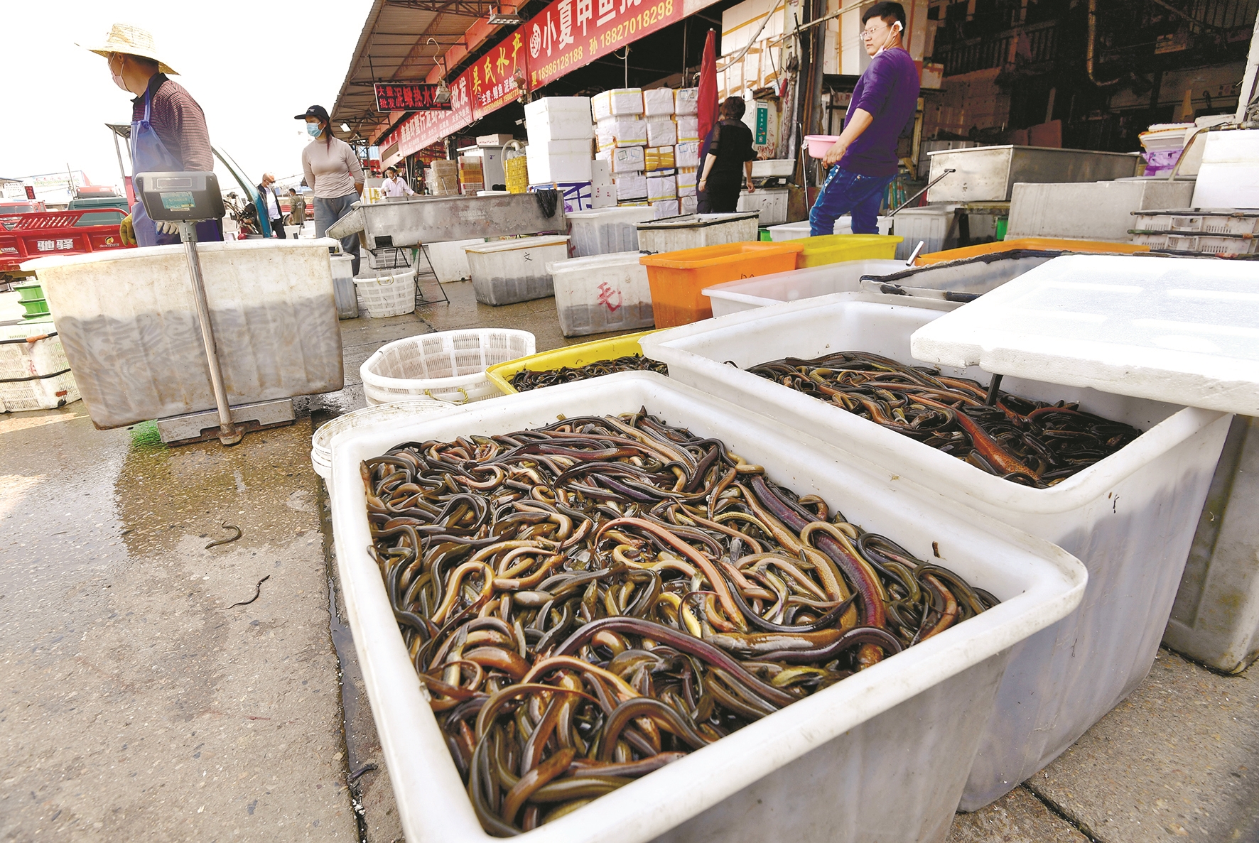 商户正在销售黄鳝鱼