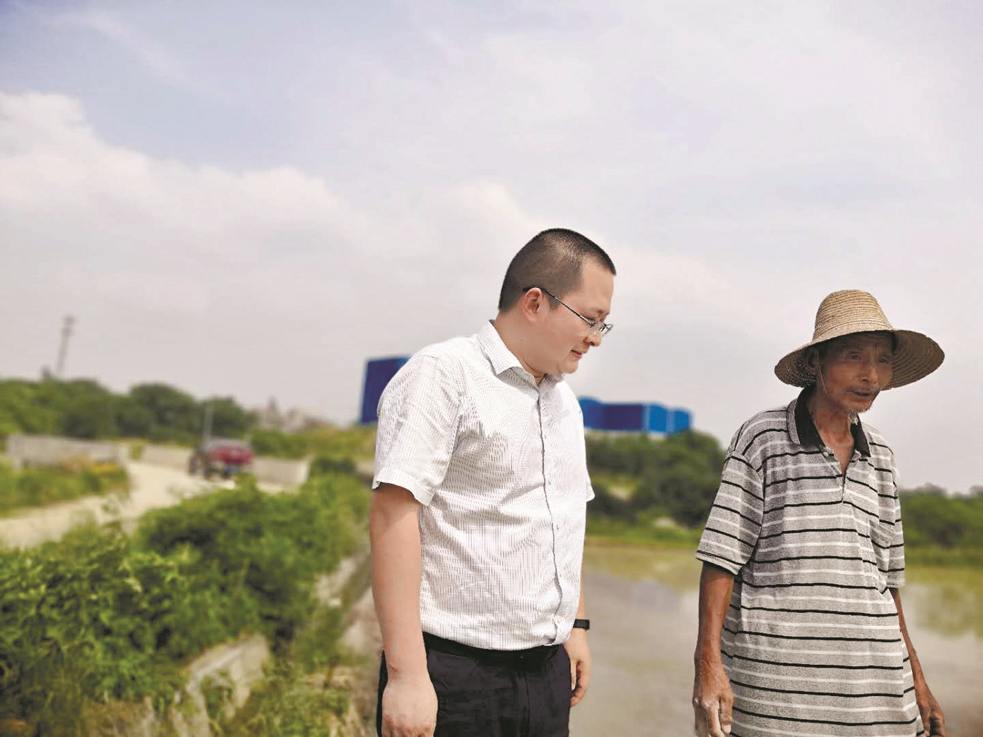 朱俊刚(左)和村民交流