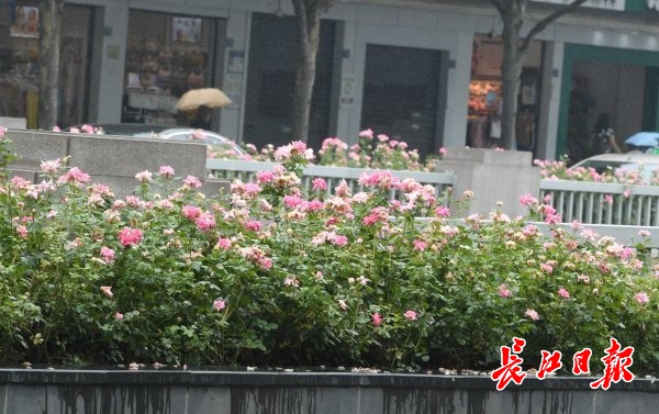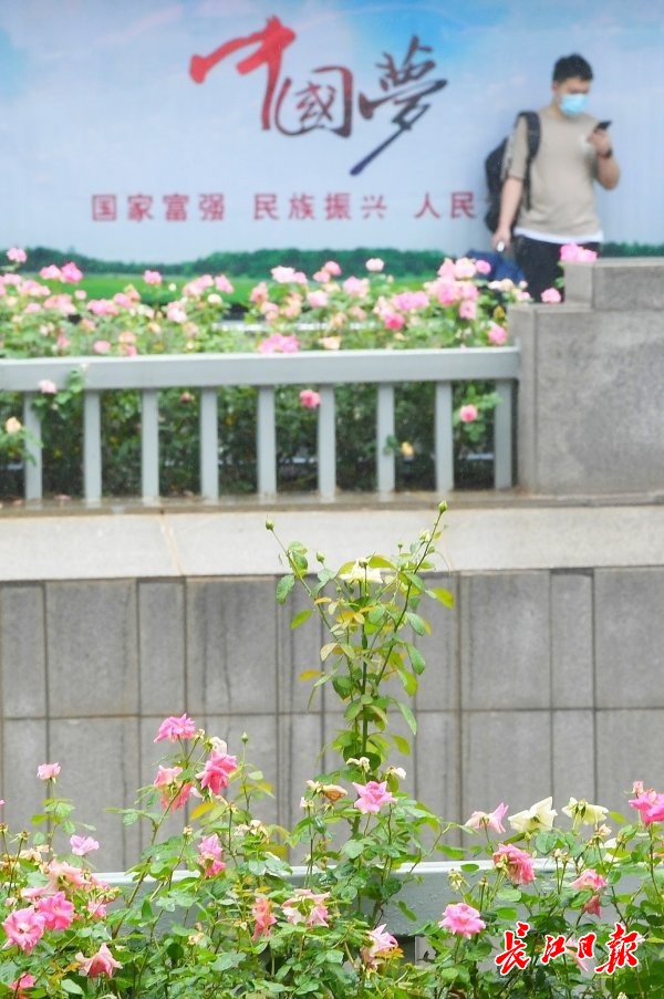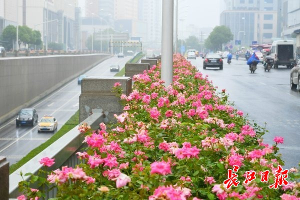 长江网6月10日讯 6月10日,武昌武珞路马路中央的绿化丛里开满了月季,色彩娇艳的花朵扮靓了武汉街头。(记者李子云 摄影报道)