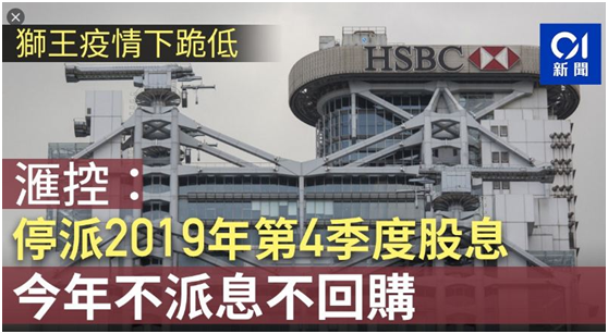 按照汇丰自己的说法,它是应英国监管当局的要求,为了应对疫情,取消2019年的第四次派息,同时将在2020年底前暂停派息及回购股份。
